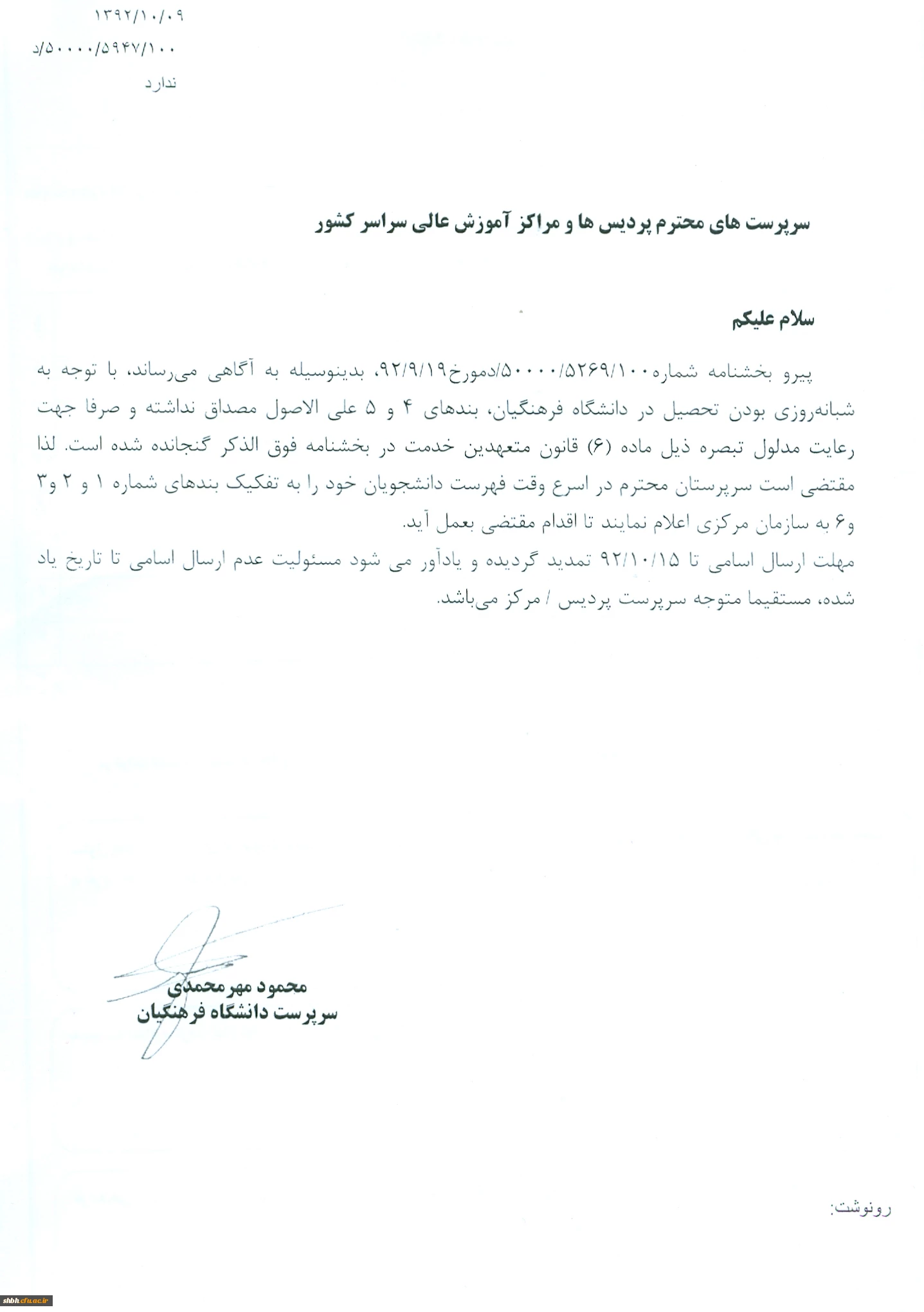 اصلاحیه ی بخشنامه کسر 0/45درصد دانشجویان کارشناسی پیوسته