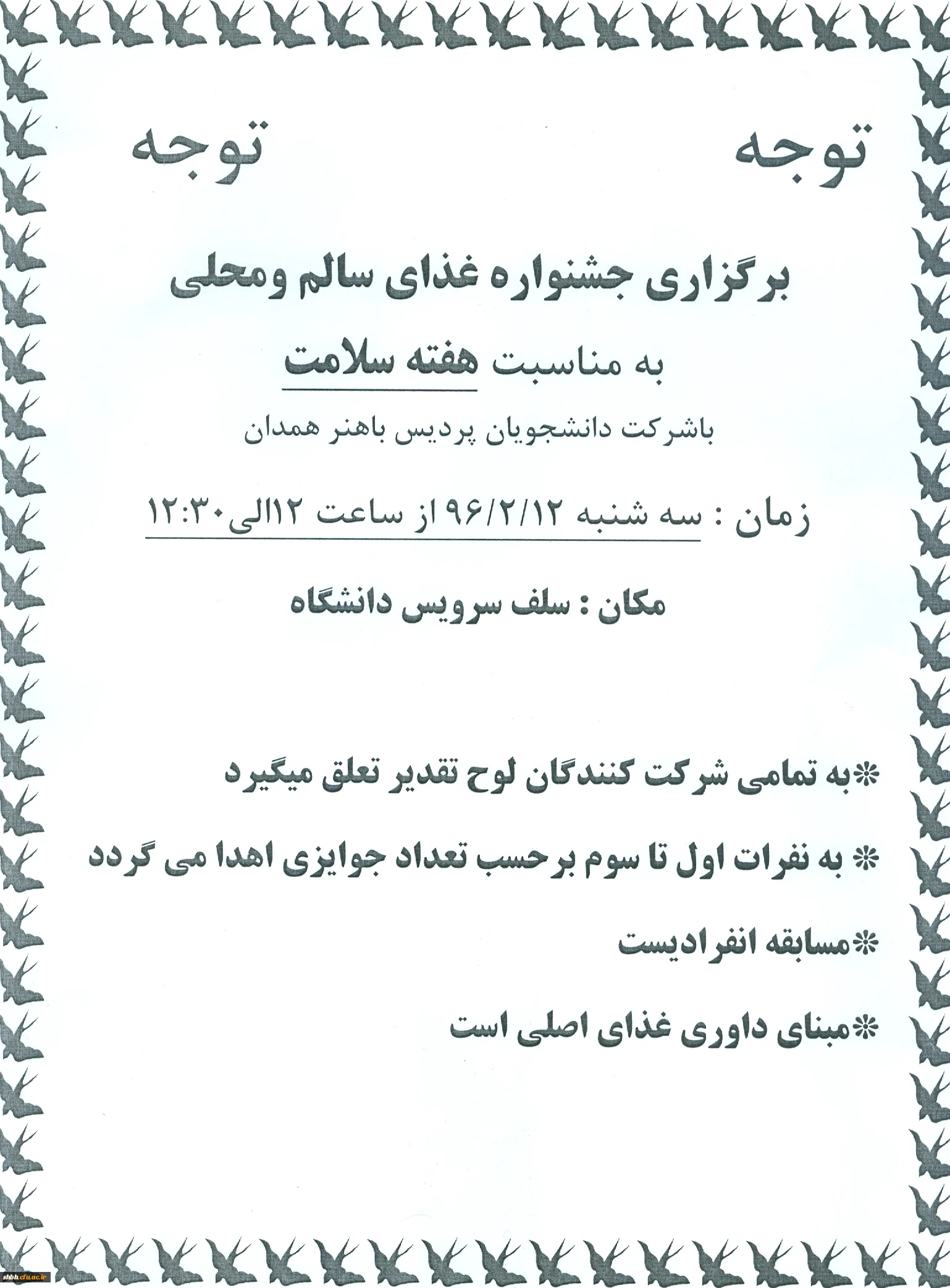 امتیاز دهید : برگزاری جشنواره غذای سالم و محلی به مناسبت هفته سلامت دوشنبه 11 اردیبهشت 1396 ساعت 11:24