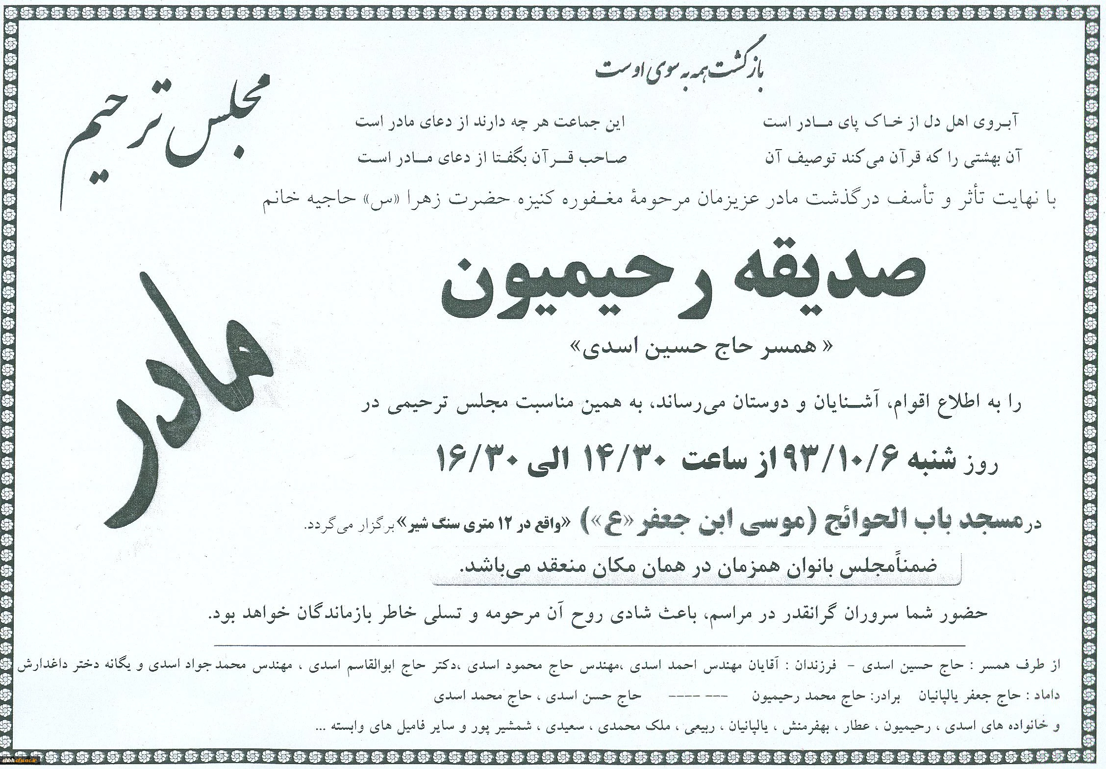 از خداوند یکتا رفع درجات آن بزرگوار دربهشت أعلا و مزید فضل و رحمت پروردگار بی همتا برایشان و طول عمر بازمانگان آن مرحومه همراه با سلامتی و حسن عاقبت شان خواهانیم