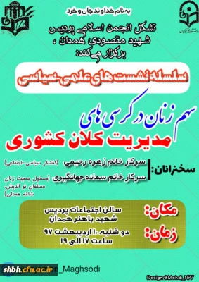 "سلسله تشست های علمی-سیاسی" سومین نشست از "سلسله تشست های علمی-سیاسی" انجمن اسلامی شهید مقصودی: سهم زنان در کرسی ...
